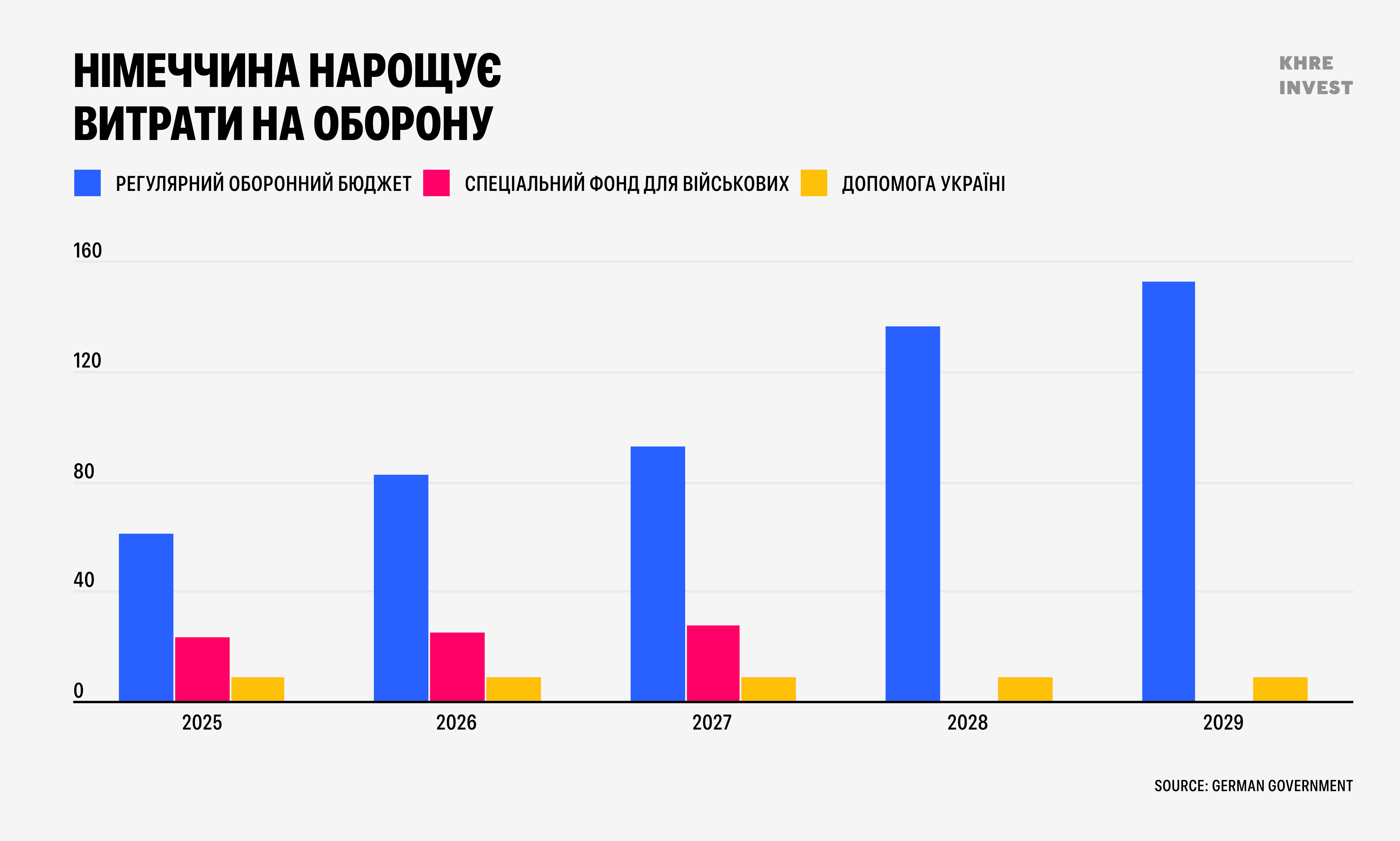Канцлер Фрідріх Мерц ініціював виділення близько 600 млрд євро на оборонні потреби. Важливо, що ці витрати частково виведені за межі жорстких бюджетних обмежень, що дозволяє значно прискорити їх реалізацію.