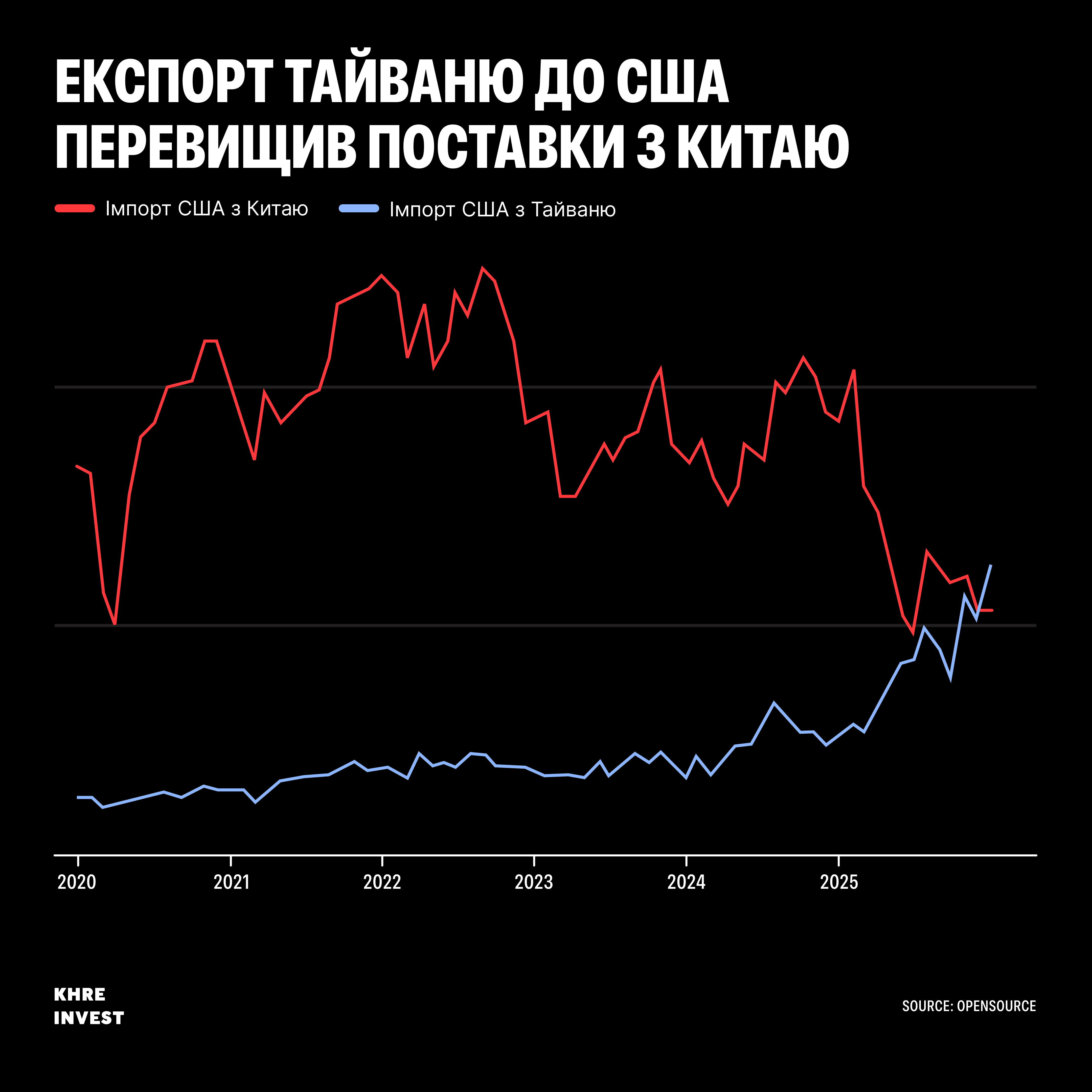 Сполучені Штати вперше за кілька десятиліть імпортували більше товарів з Тайваню, ніж з Китаю. Зміна стала наслідком поєднання двох факторів — торговельної політики Трампа та глобального буму штучного інтелекту, який різко підвищив попит на технологічну продукцію.